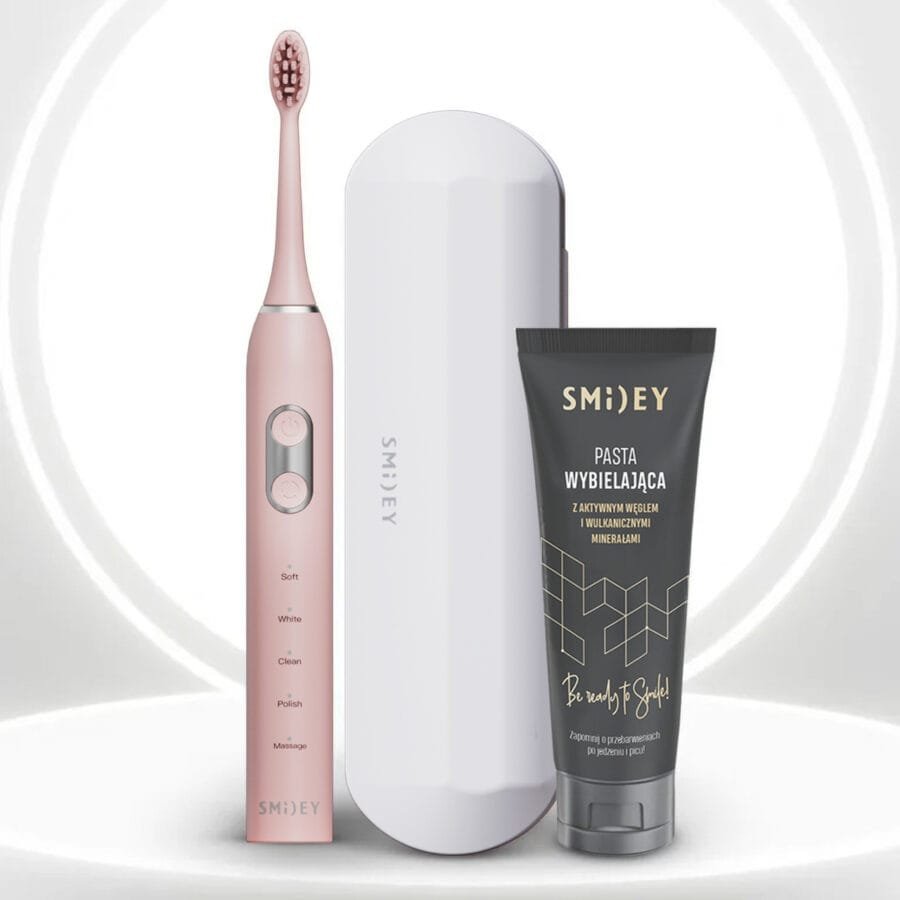 Szczoteczka Soniczna Smiley Plus Różowa + Białe Etui + Pasta Węglowa